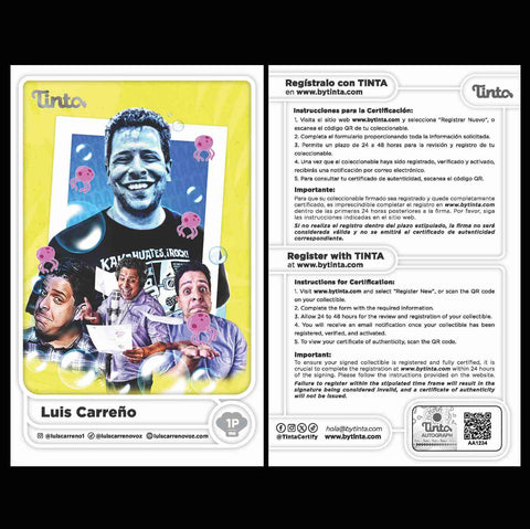 En la parte posterior de la tarjeta, se encuentra un holograma único que será desprendido y colocado en tu coleccionable por el actor o actriz al momento de firmarlo, garantizando su autenticidad y validez.